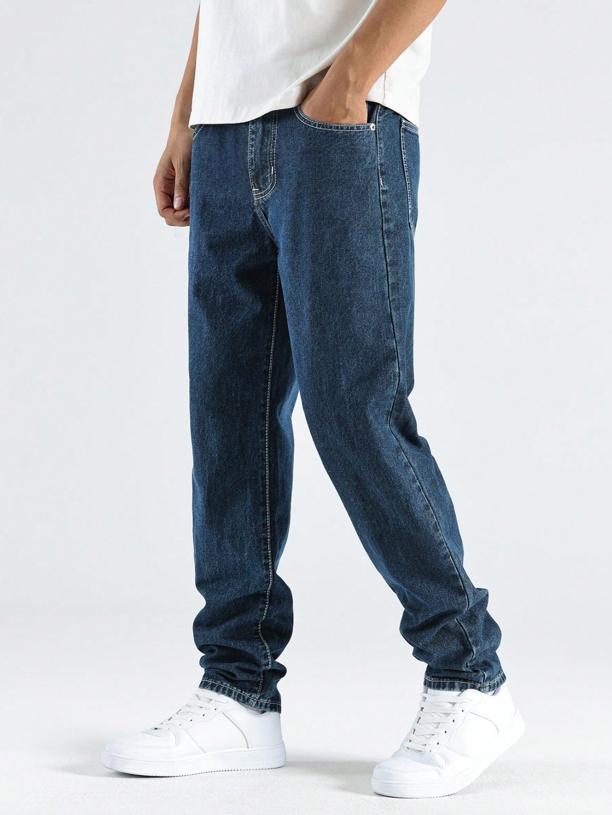 Jean uni, style simple et décontracté pour homme, idéal au quotidien